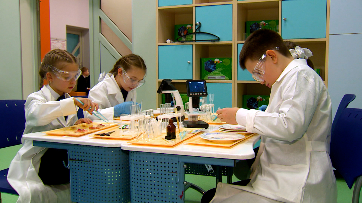 В рамках поставленного задания школа была оснащена микроскопами, лабораторной посудой, реактивами, весами, магнитными мешалками и центрифугами. Также были поставлены учебные и методические материалы.